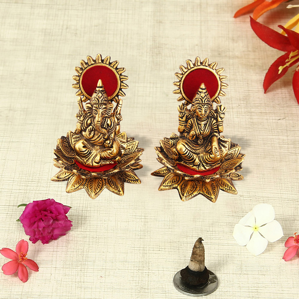 A Divine Statue Of Laxmi Ganesh That Looks Classy And Antique. This Beautiful White Metal Showpiece Will Surely Increase The Aura Of Your Home Temple. Adding More To It Is The Fact That Its Not Merely For Religious Purpose As It Can Be Used As A Home Decor Item And Can Be Given As A Gift To The Ones You Love. This Handcrafted Antique Idols Of Lord Ganesha On Round Base Is Made Of Pure White Metal. The Idol Is Polished Silver To Give It An Alluring Antique Look. The Gift Piece Has Been Prepared By The Creative Artisans Of Jaipur.Handicrafts Paradise Brings To You Exclusive Idols Of Lord Ganesh And Goddess Laxmi Sitting Together On The Same Dais. A Unique Opportunity To Get The Blessings Of Ganesh And Laxmi Together And Bring Home Health, Wealth, Wisdom And Prosperity Together