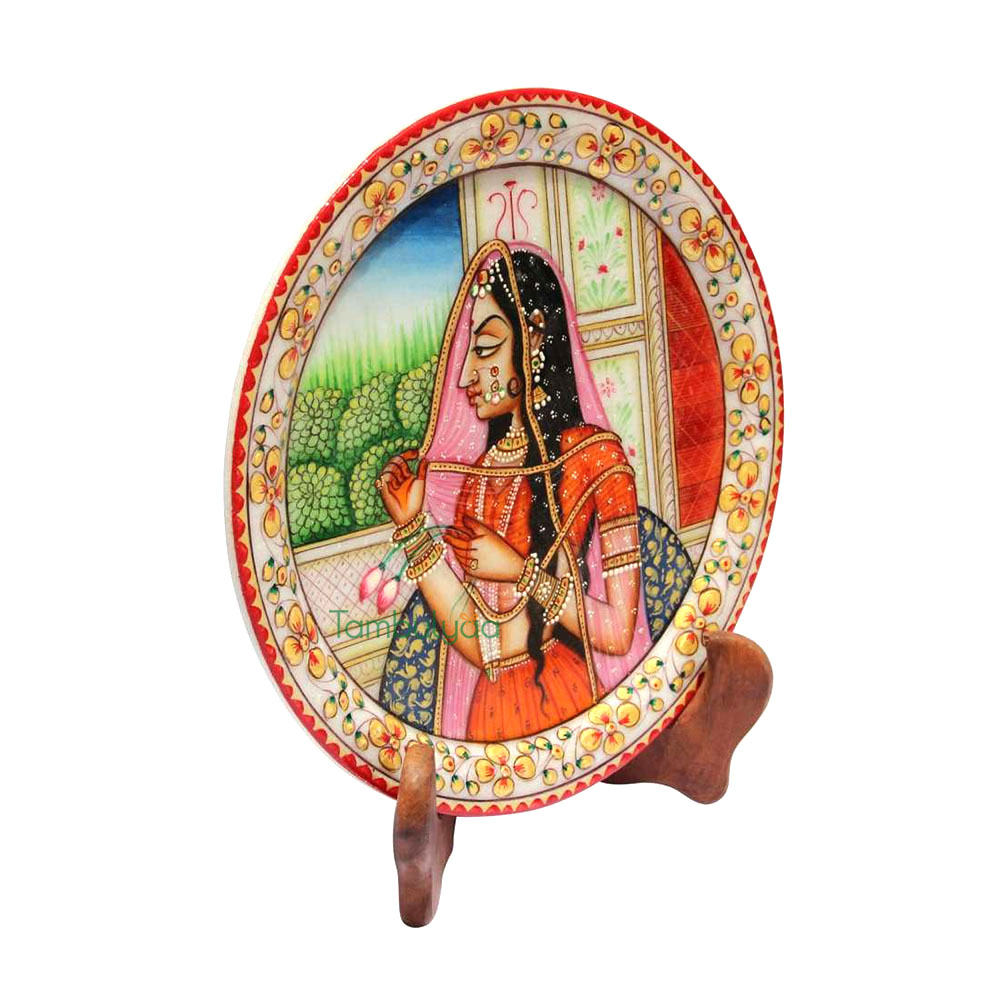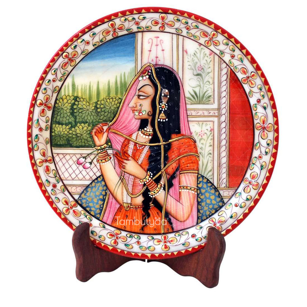 Tambulyaa Banithani Painted on Marble Pate 9 inch