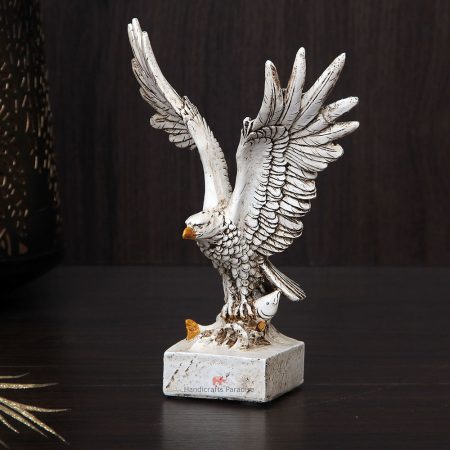 It is a Resin Eagle Showpiece. This exquisite product by Handicrafts Paradise is an amazing piece of art. Made in resin. Eagles fly alone at high altitude. Eagles are fearless and never surrender to the size or strength of its prey. It can also be decorated in homes and showroom. It can be gifted to the friends, near and dear ones. It will enhance the beauty and vibes of your home and office.