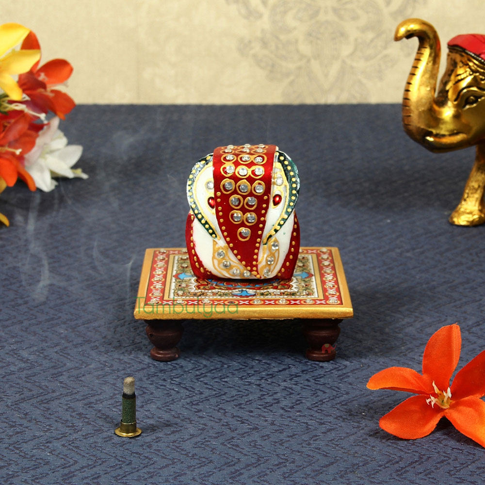 Tambulyaa Ganesha on Chowki with Intricate Painting