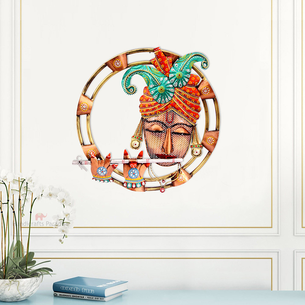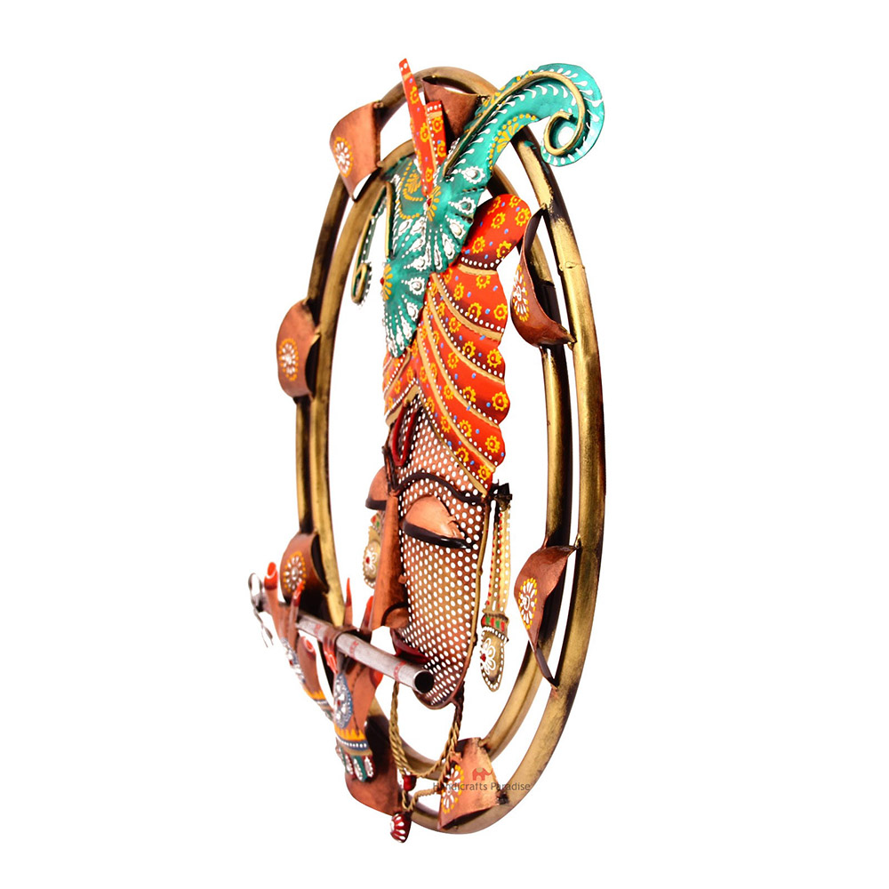 This handcrafted decorative hand made Krishna wall decor showpiece helps you to enhance the beauty and charm of your decor. This product is a must to brighten up your home decor. Every detail matters Clean designs, meticulous craftsmanship, stunning portraits and artefacts, personal touches and colors, and the highest quality materials. Most contemporary and modern design suits your living spaces. The color’s of the product may slightly vary. Handmade with metal the designs are artistically made using best craftsmen techniques. These craftsmen bring generations of traditional art and creativity. The uniqueness and authenticity of each is reflected in small imperfections which are characteristic of handwork. Great gift for your loved ones for Anniversary, birthdays, Diwali, new year.
