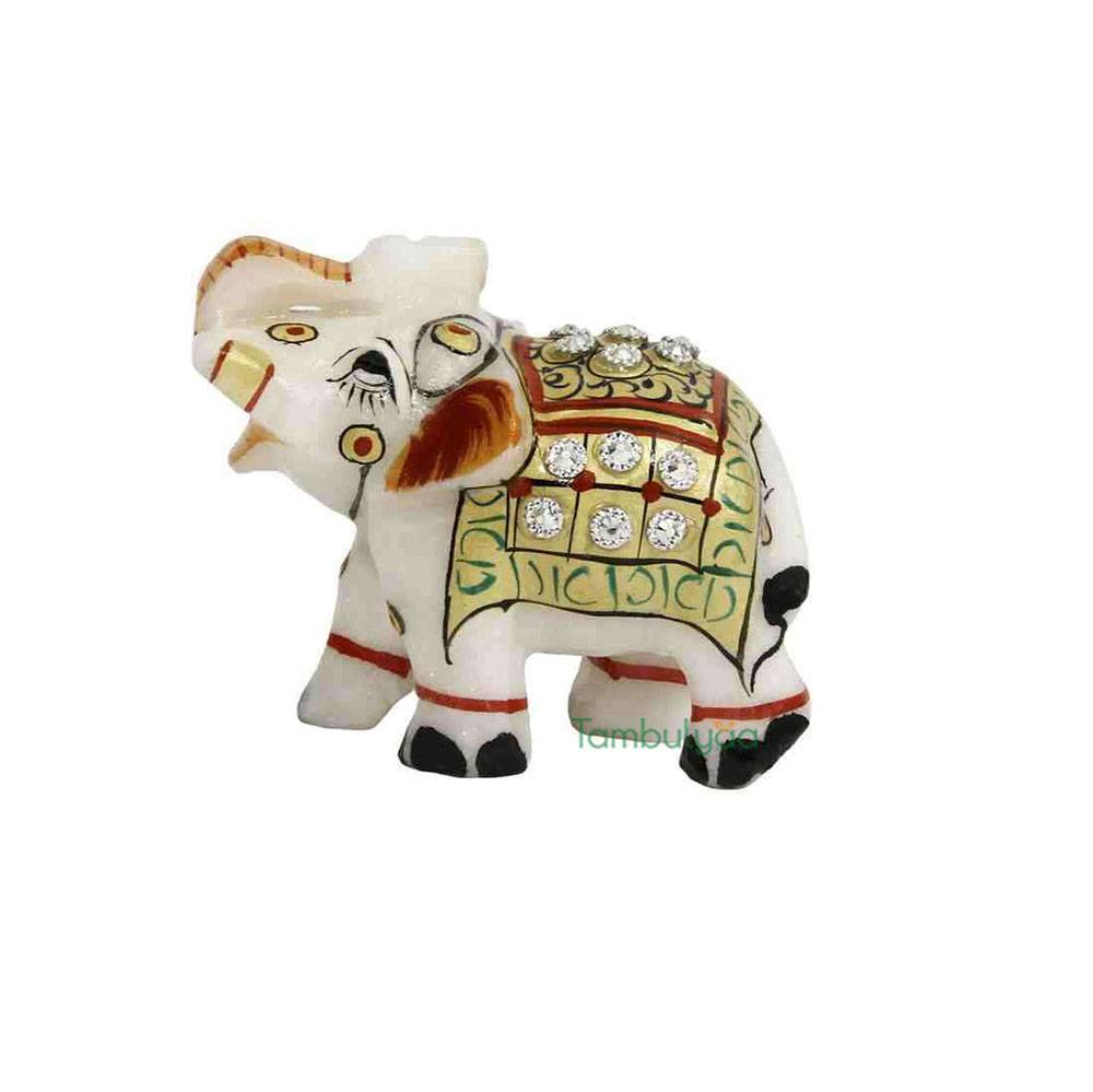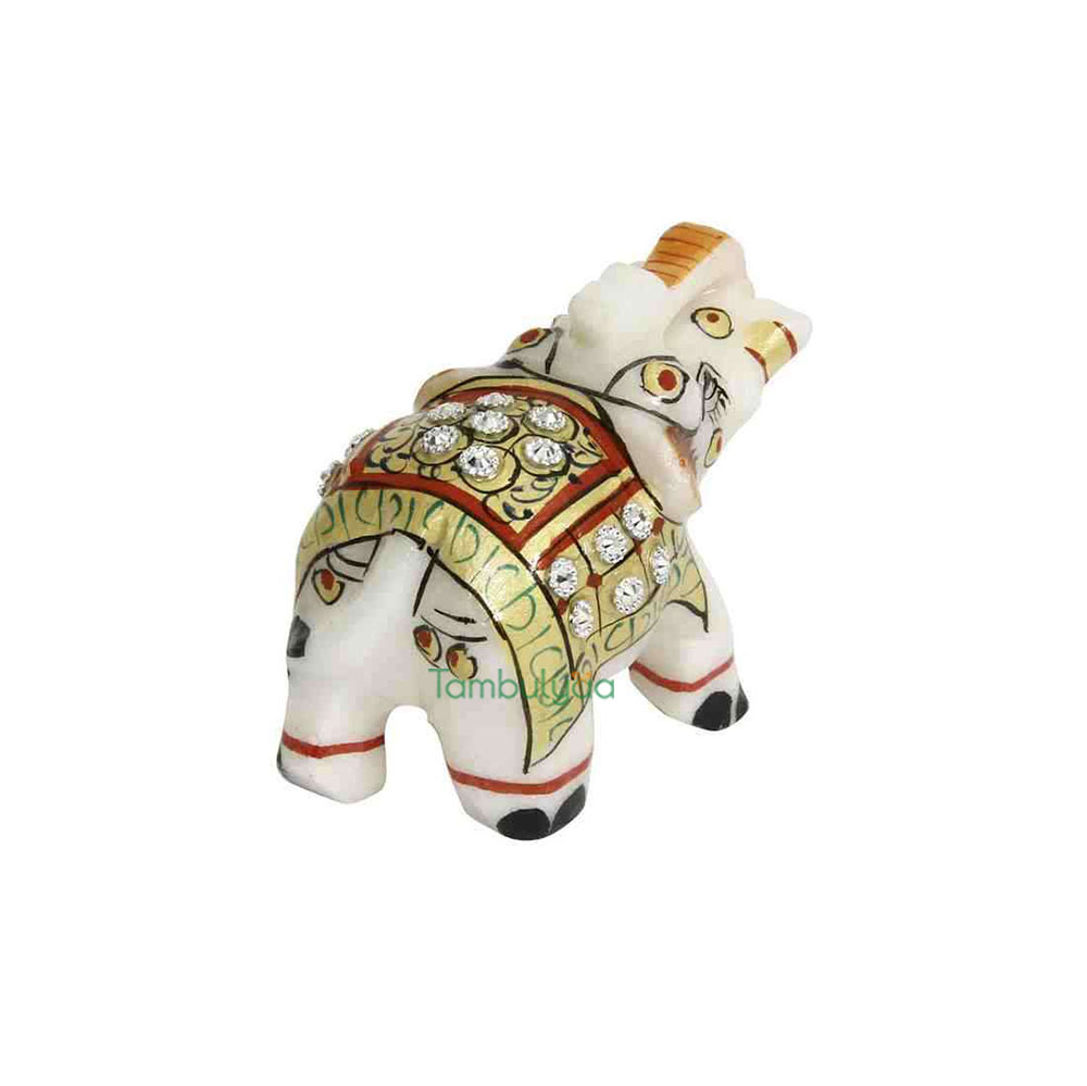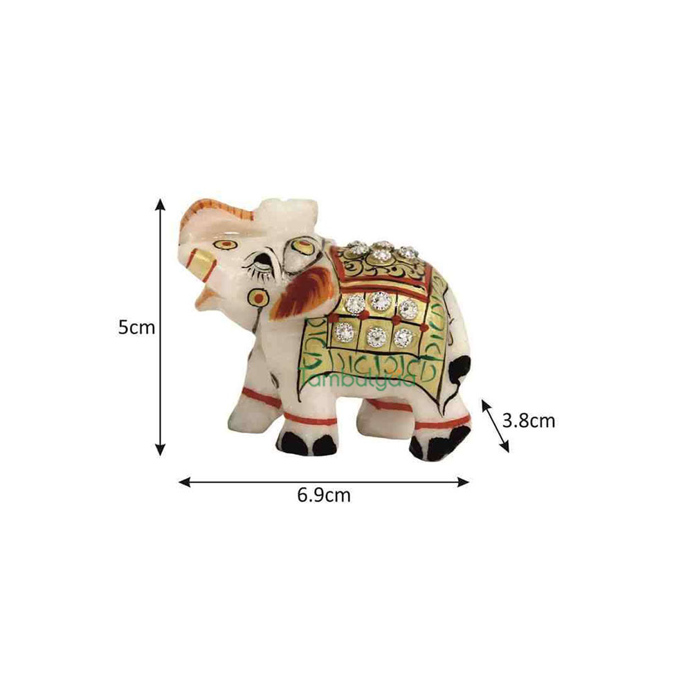 Tambulyaa Marble Elephant Embellished, Hand Crafted and Hand Painted Showpiece for Home Decor – 2 inches