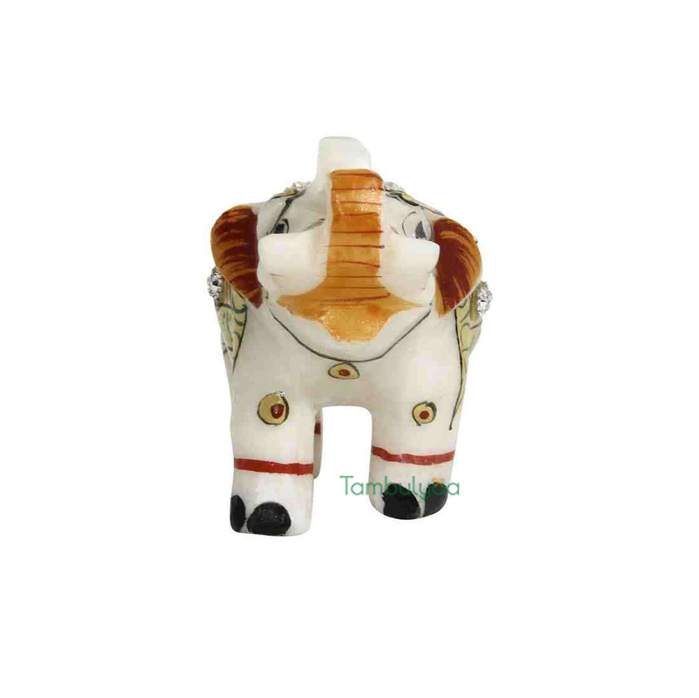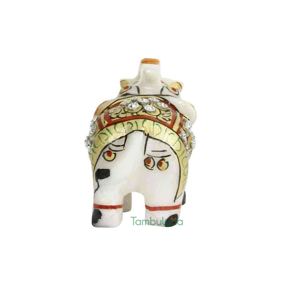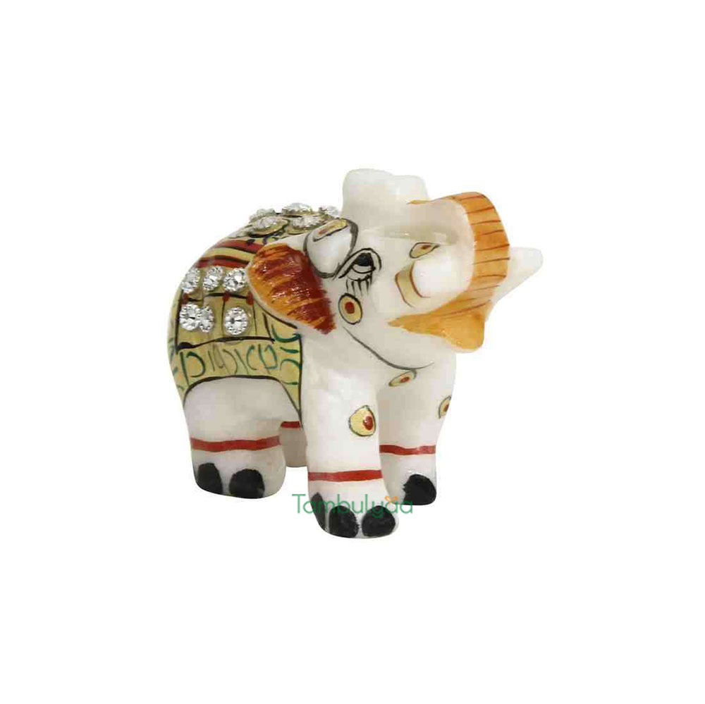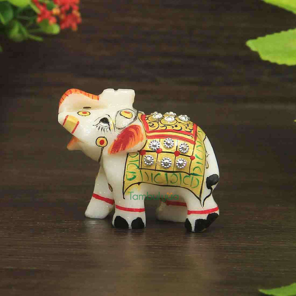 Tambulyaa Marble Elephant Embellished, Hand Crafted and Hand Painted Showpiece for Home Decor – 2 inches